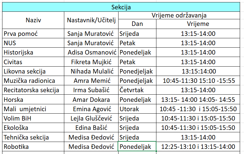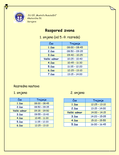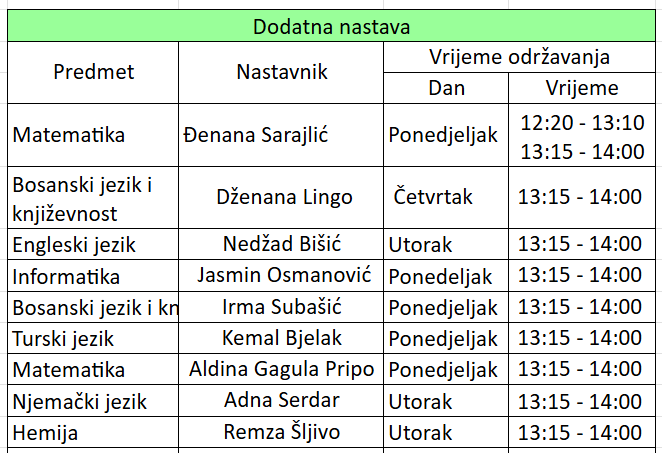 NASTAVA UDŽBENICI RASPORED ČASOVA RASPORED ZVONA SEKCIJE/SLOBODNE AKTIVNOSTI TERMINI DODATNE NASTAVE TERMINI DOPUNSKE NASTAVE BIBLIOTEKA